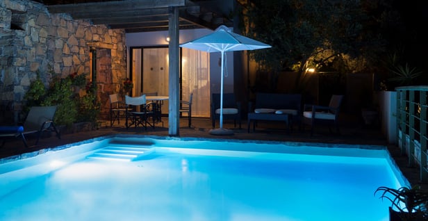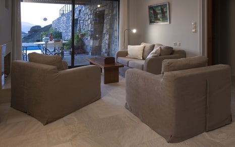 The villa faces southwest and offers a uniquely beautiful view over the Mirabello Bay.