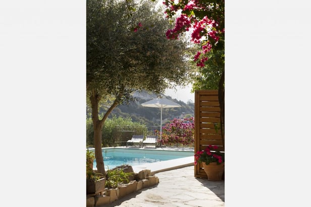 Auf der großen Terrasse -150qm, mit integriertem Privatpool - 8x4M, genießen Sie die kretische Sonne, in geschützter Atmosphäre und herrlich schöner Umgebung. Ein Holzpavillon bietet Ihnen den Rahmen für romantische Candle-light-dinner und mehr...