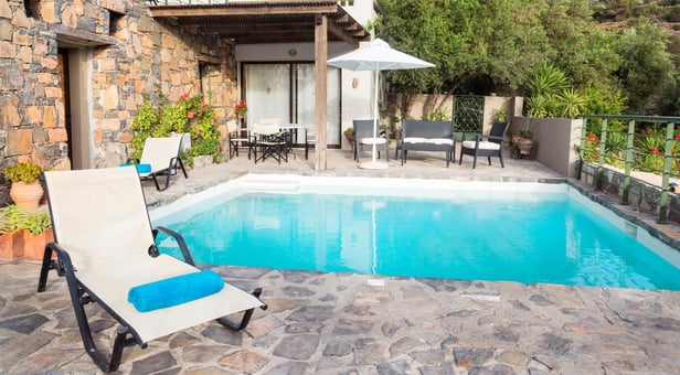 Die 106 qm große Terrasse integriert einen 6 x 6 Meter großen Pool. Sie ist eine ideale Relaxzone in privater Atmosphäre.